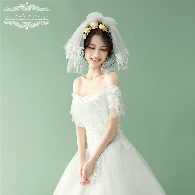ウェディング ベール ショート オフホワイト 安い 結婚式 花嫁 披露宴 花柄 二次会 ブライダル マリアベール ts143 トヨワストア 通販 Yahoo ショッピング